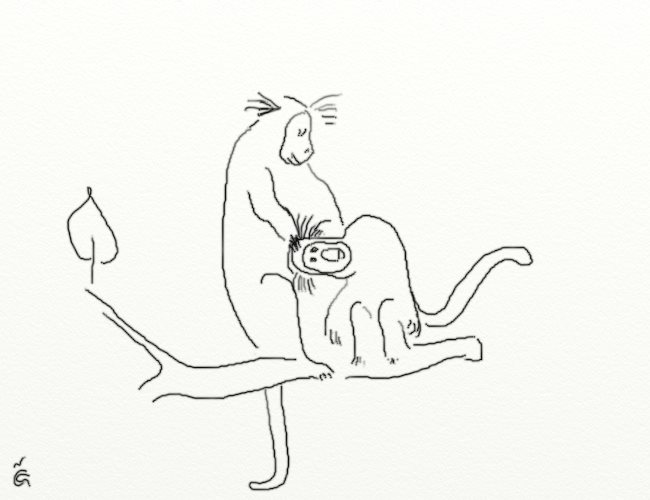 Während sich die Nasenbären von meiner Anwesenheit nicht beeindrucken liessen, unterbrachen die Weissohraffen ihre Fellpflege und beobachteten mich völlig interessiert. Wer war jetzt der Exot?